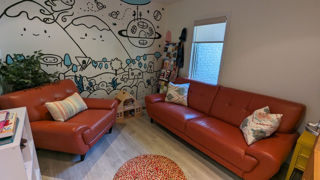 Our play therapy room is designed to foster a safe and nurturing environment for children to explore and express themselves through play.