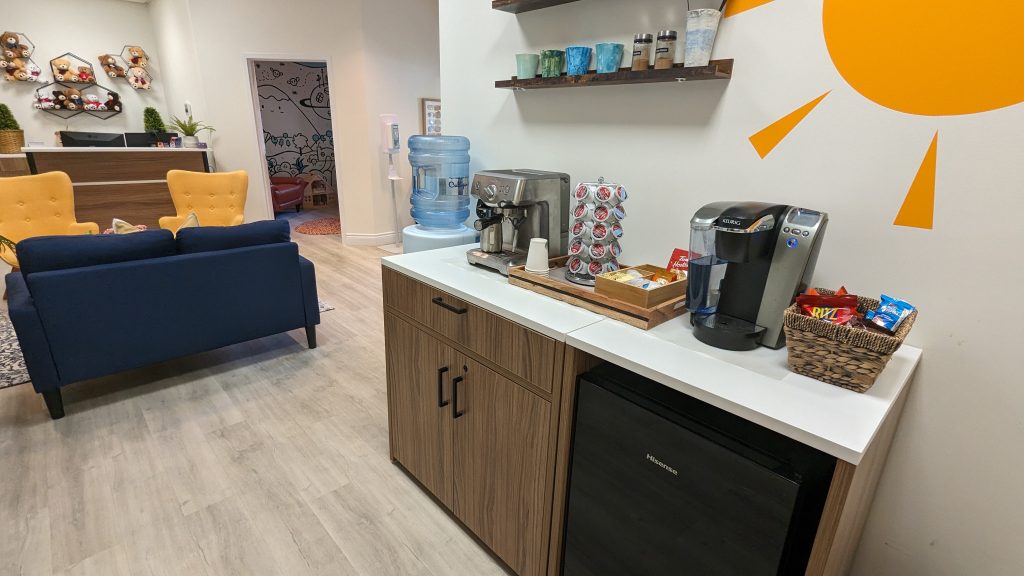 With comfortable seating and a warm ambiance, it serves as a hub for connection. Guests are invited to enjoy complimentary refreshments and snacks while they wait for their appointments or unwind after sessions. Our aim is to ensure that everyone feels cared for and comfortable throughout their time at our facility.Ā